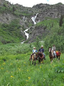 Experienced riders will enjoy the peace, serenity, and beauty of trails that rarely see other riders. Most of the trails are located in wilderness areas, and as such, are prohibited to ATV’s, mountain bikes, and 4WD vehicles. The terrain varies from oak brush and sagebrush hillsides at lower elevations, interspersed with giant Ponderosa pines and stands of Douglas fir, to vast aspen groves and open meadows at subalpine elevations. On north-facing slopes, riders will find large stands of “dark timber”—Englemann spruce intermixed with subalpine fir—and in places, avalanche chutes covered with mountain ash, chokecherry, and serviceberry. At high elevations (above 11,500 feet) there are wide expanses of alpine tundra intermixed with stands of short, dense pines called krummholz (“crooked wood” in German).