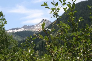 If you choose to bypass Geneva Lake and keep going up the North Fork of the Crystal, look forward to an easy hike, lovely views, lots of wildlife and wildflowers, open meadows, and intermittent timber. There are several springs alongside the trail that offer clean water—partake at your own risk, but the water is clean, according to our unscientific samplings. The river is within view of the trail at almost all times, and it is a lovely river. The trail finally crosses the river at a wide meadow, which is called “Love’s Cabin.” This is the site of one of OutWest Guides’ summer camps for their overnight trips. There used to be a sheepherder’s cabin there, but there is no longer any evidence of a structure.